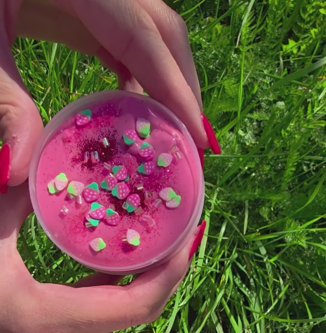Dieser traumhaft softe ✨ Butter Slime ✨ kommt in einer süßen Portion von 160ml 💖 Er ist super angenehm zu kneten dehnbar und perfekt auch für Anfänger 🌸 Kein nerviges Kleben nur pure Slime Liebe 💕 Und das Beste er verzaubert dich mit einem leckeren Erdbeer Duft 🍓🍓🍓 einfach wie ein süßer Sommermoment im Döschen 🌻🌅